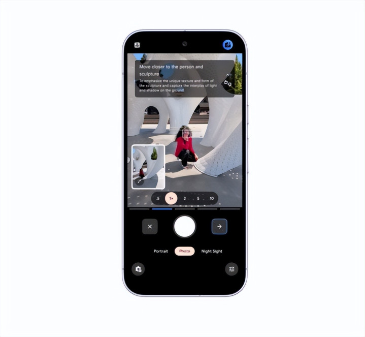 该功能将随新设备以预览形式上线,并利用 Gemini 模型就如何更好地取景与构图提供建议。你甚至可以选择“获取灵感”选项,获得你可能未曾考虑过的场景建议。 图片来源:Google