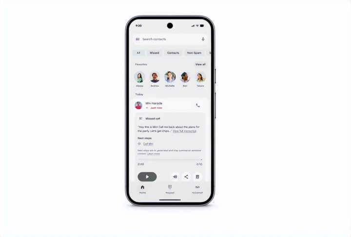 在 Pixel 的电话应用中,一项名为 Take a Message 的新功能将为未接与拒接来电提供实时转写,并基于来电者的语音留言利用 AI 识别你需要采取的下一步行动。(该更新也将来到 Call Notes。)