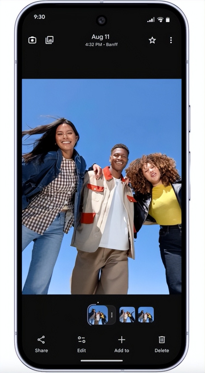 此外,相机现在能够识别你何时在拍摄合照。“Auto Best Take(自动最佳成片)”功能会启动,并在数秒内分析多达 150 张照片,以找出最佳一张——无论是你亲自拍下的,还是通过 AI 融合多张生成的。